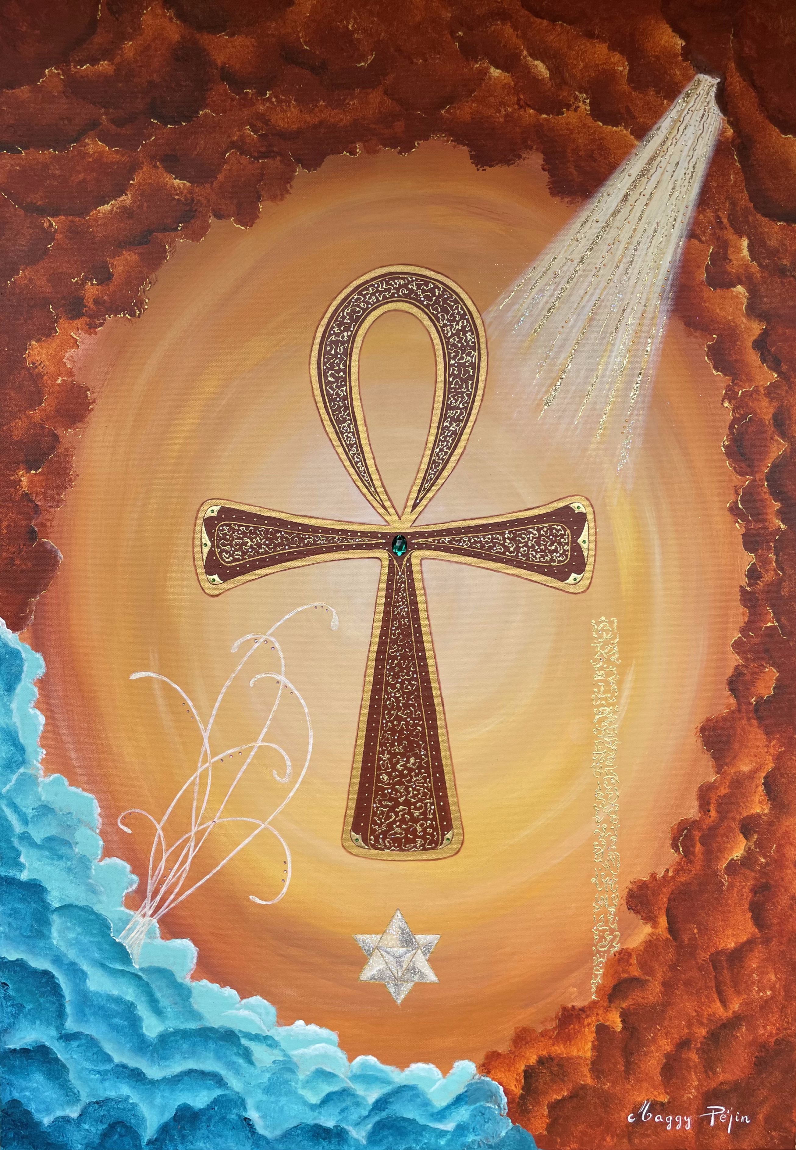 Dans cette œuvre, l’Ankh et la Merkabah dialoguent. Ensemble, elles évoquent le pouvoir intérieur, la transformation et la mémoire de ce qui nous relie à l’origine : une force qui traverse le temps et nous rappelle que l’immortalité n’est peut-être pas qu’un mythe... mais une mémoire oubliée.
