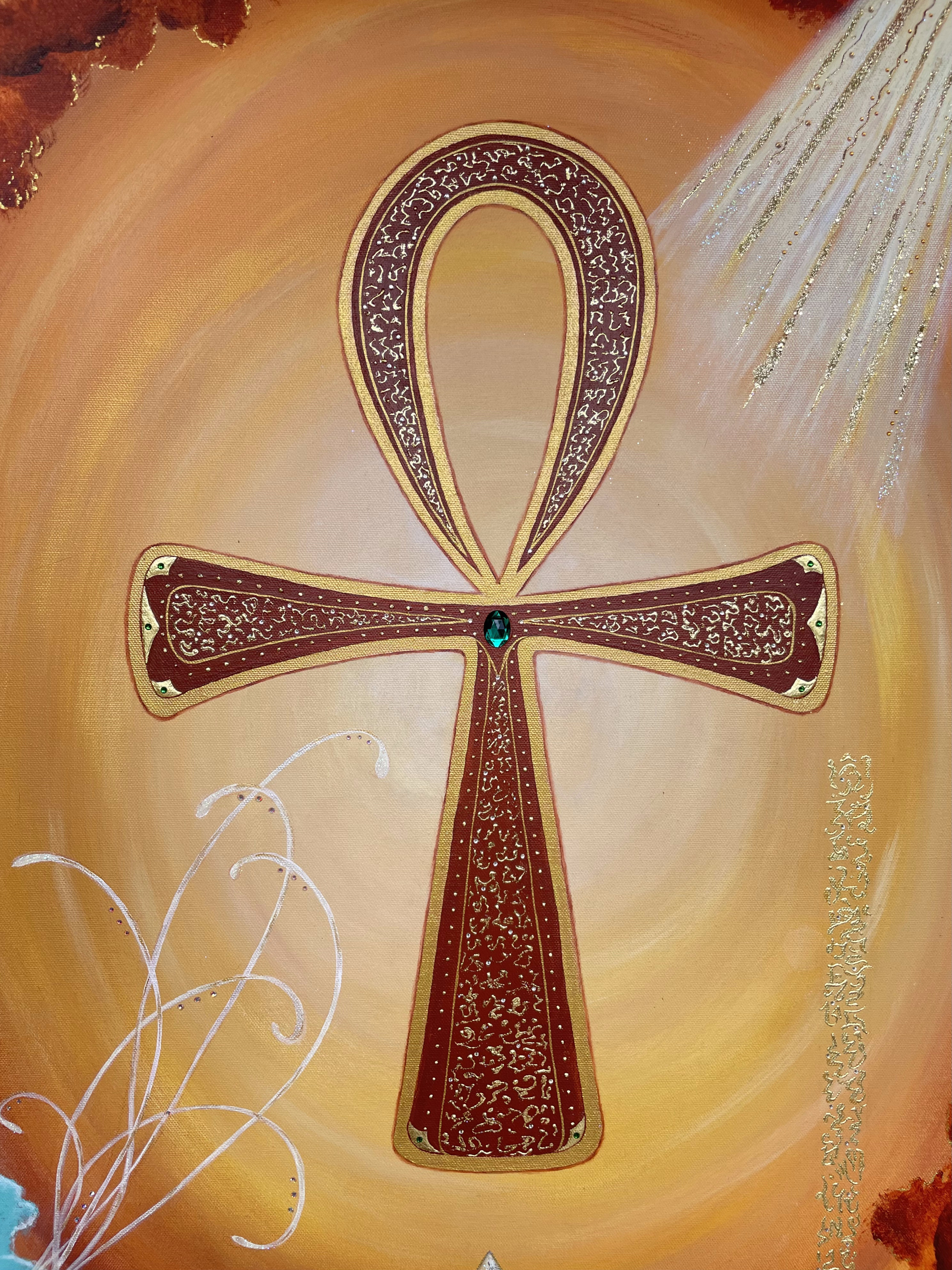 Dans cette œuvre, l’Ankh et la Merkabah dialoguent. Ensemble, elles évoquent le pouvoir intérieur, la transformation et la mémoire de ce qui nous relie à l’origine : une force qui traverse le temps et nous rappelle que l’immortalité n’est peut-être pas qu’un mythe... mais une mémoire oubliée.
